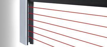 SEUSTER setzt damit höchste Maßstäbe bei der Personensicherheit! Weitere am Tor aufbauende Installationen wie Lichtschranken werden dadurch überflüssig. Serienmäßig ist das Sicherheitslichtgitter bei allen flexiblen Schnelllauftoren* sowie allen Spiraltoren montiert.